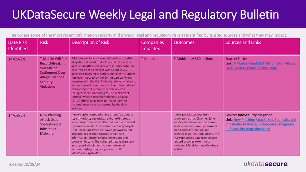 UKDATASECURE Weekly Threat Report Bulletin - 20/08/24